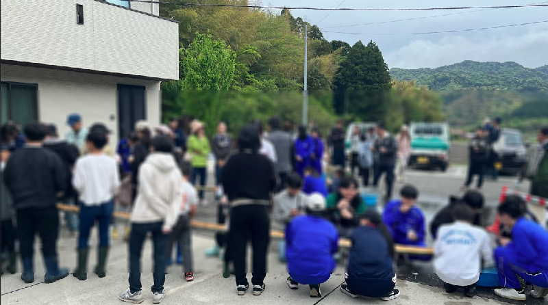 26日(日)、内日地区放課後教室「スマイル」と桜山小学校区NPO法人「KANANOWA」、暁雲寺、専宗寺などの地域団体が共同で企画し、山口県高等学校西部地区連絡協議会加盟高校のうち5校の生徒さんや有志の方がボランティアで運営に協力していただき、まちと農山村の体験交流会(いわゆる「タケノコ掘り体験交流会」)が実施されました。